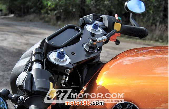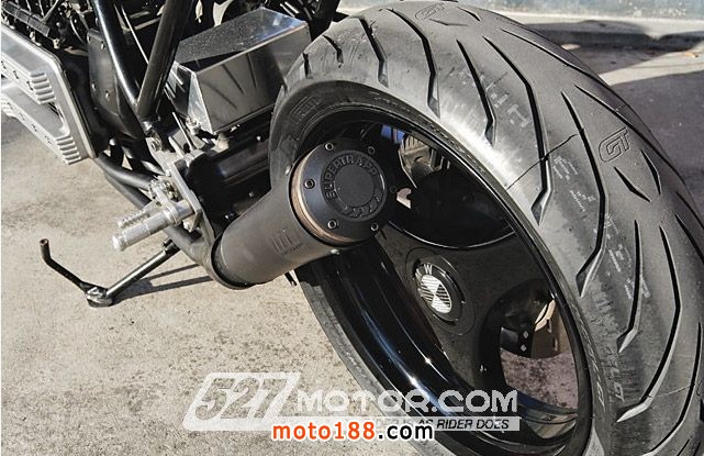 而在其馀改動(dòng)方面,另外重新設(shè)計(jì)了4-1排氣,從左側(cè)排氣口出來之后,直接匯集成單一大口徑管路,然后將排氣放置于座墊左側(cè)!其他的小細(xì)節(jié)方面,還包含手工油箱、麂皮座墊、(流用1150的尾燈),直接將尾燈與座墊融為一體,同時(shí)重新設(shè)計(jì)前上下三角臺(tái),搭配新的倒立前叉與ISR上泵等高檔部品等等。