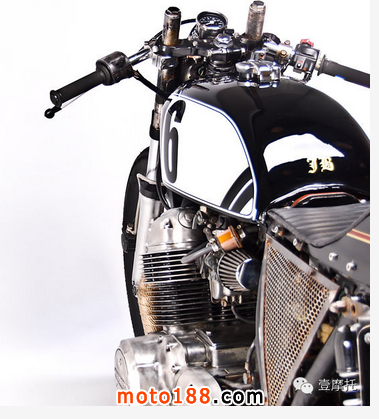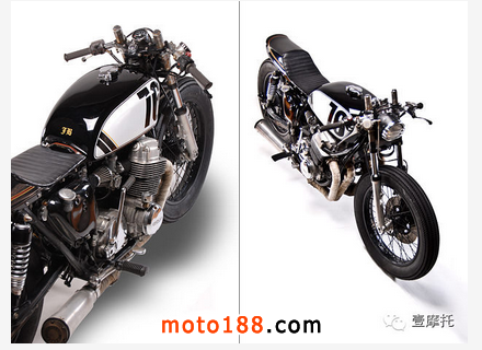 ?? Pat Jones的改裝作品樣子看起來(lái)都不錯(cuò),但這輛是他最引人注目的作品。最大的亮點(diǎn)就是換上了 Kawasaki KZ的尾部和現(xiàn)代風(fēng)格的涂裝,使得這輛CB750看起來(lái)有點(diǎn)玩世不恭,冬菇頭空濾,纏上繃帶的陷阱排氣和firestone胎,愛(ài)誰(shuí)誰(shuí)。
