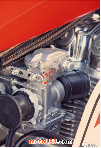 ? 改裝京濱CR29的化油器和直通排氣為引擎提供了更強(qiáng)勁的動(dòng)力,重新設(shè)計(jì)制作了車體套件,大量的定制改裝配件,從三星聯(lián)板、后搖臂到剎車系統(tǒng)。?