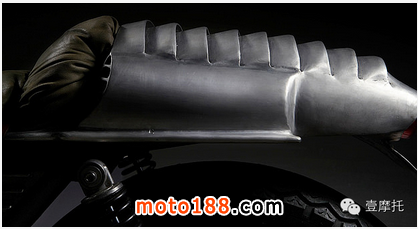 CAFE RACER DREAMS:是的這家來自西班牙的改裝廠就是這個(gè)名,但是卻帶著這輛v7走向了scrambler 風(fēng)格,短小的精悍的車身,噴砂的輪轂亞光處理搭配豆胎,將電池盒移到了搖臂下,去掉邊板露出k&n空濾,排氣也針對(duì)大流量空濾定制,去掉了cafe的經(jīng)典元素座包后改裝了后段車架換上平座,看起來是不是也別有一番風(fēng)味?