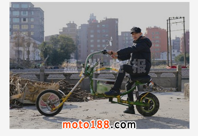 核心提示: 這輛山寨哈雷霸氣酷炫,長長車頭,超長手柄,流線型車身,卻藏著一顆電動心臟,它其實是一輛電動車。 這輛車都是用廢舊材料