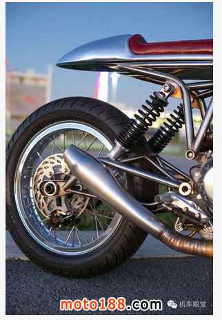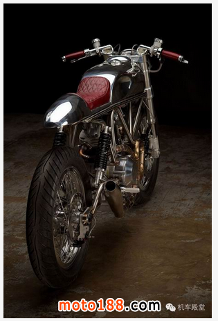 J63的框架是有全車間團(tuán)隊重新設(shè)計的。設(shè)計團(tuán)隊也為座椅舒適度的改造做好了準(zhǔn)備。使用手工成型和鋁板打造了車子苗條的油箱和尾部。另外,車身設(shè)計與道路平行,尾部駝峰設(shè)計也能讓車更加戰(zhàn)斗,無數(shù)小時的拋光,使得車身絕大部分產(chǎn)生鏡面效果。最后又手工縫制了一個感覺很不錯的復(fù)古座椅。