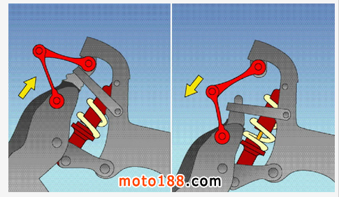 所謂的懸掛機(jī)構(gòu)就是以各項(xiàng)機(jī)械元件所組成,可以造成輪胎做單一方向運(yùn)動(dòng)的機(jī)構(gòu),例如最簡(jiǎn)單的前懸掛:潛望鏡式前叉系統(tǒng),就是利用外管套住內(nèi)管,讓兩管間可以做出直線的相對(duì)運(yùn)動(dòng),來(lái)完成懸掛機(jī)構(gòu)。而常見的搖臂式后懸掛機(jī)構(gòu),也是利用搖臂來(lái)固定輪胎,讓輪胎可以繞著搖臂支點(diǎn)做單一方向的運(yùn)動(dòng)。形形色色的懸掛機(jī)構(gòu),我將在后面陸續(xù)介紹。