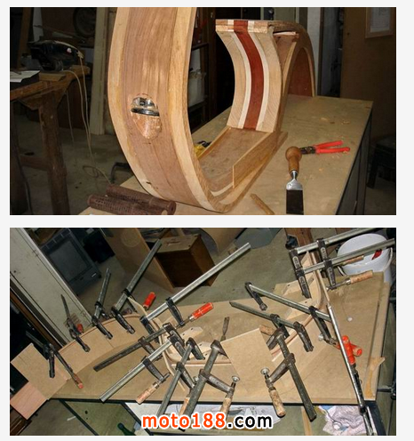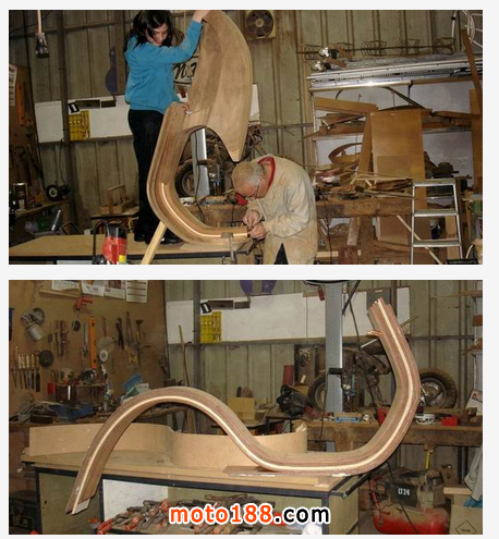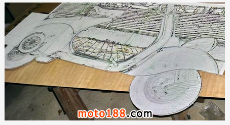 這臺(tái)木質(zhì)摩托車是專門為他心愛(ài)的女兒Daniela 所創(chuàng)造,圖中除了可以看到最終的樣子,更是可以一睹這輛車的制作過(guò)程。可以看到Carlos Alberto 先是畫(huà)了一幅心中摩托車的草圖,然后根據(jù)草圖選取合適的木材。
