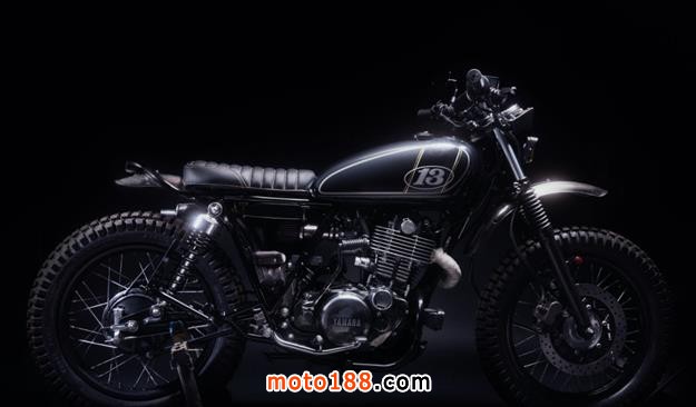 這臺黑色的咖啡車型是由一臺2015年的雅馬哈SR400改裝而來,以斜紋金線裝飾的油箱上,寫著13號的字樣,整臺車最精美的部分要屬這個單座的衍縫皮革座位,非常的精致。
