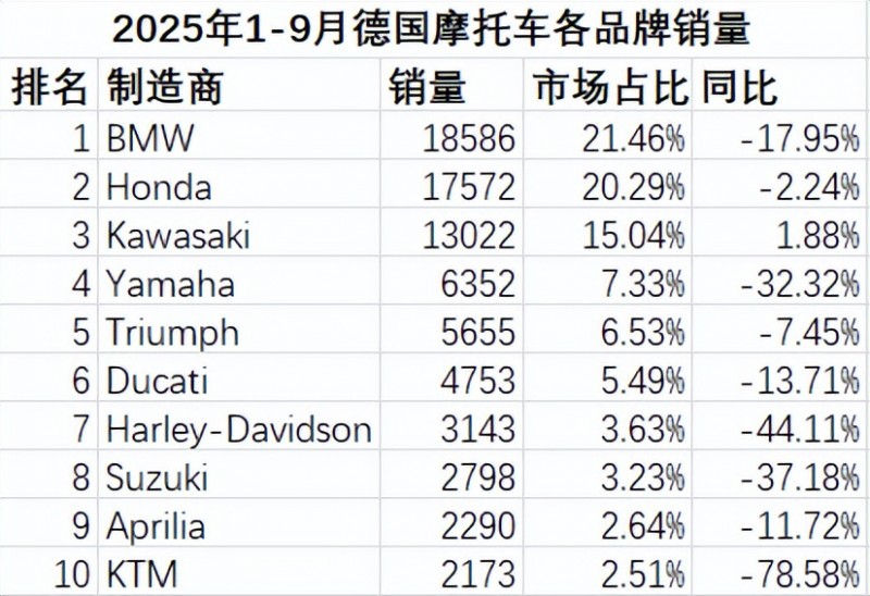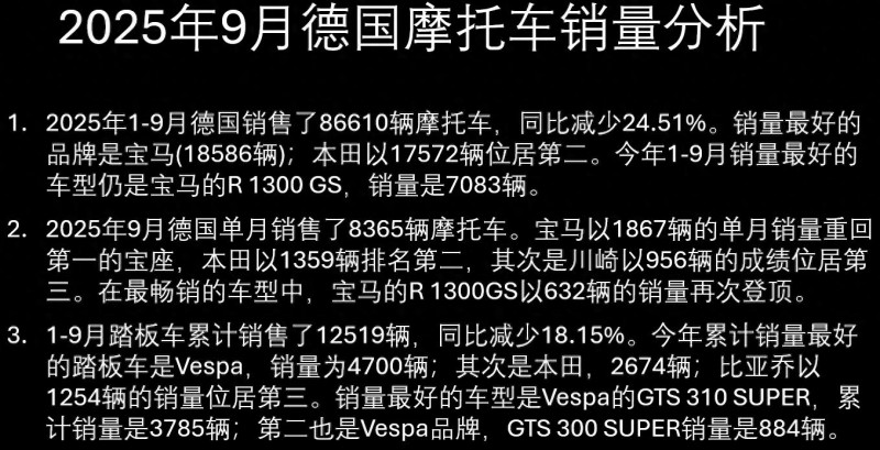 核心提示:2025年9月德國摩托車市場銷量簡報